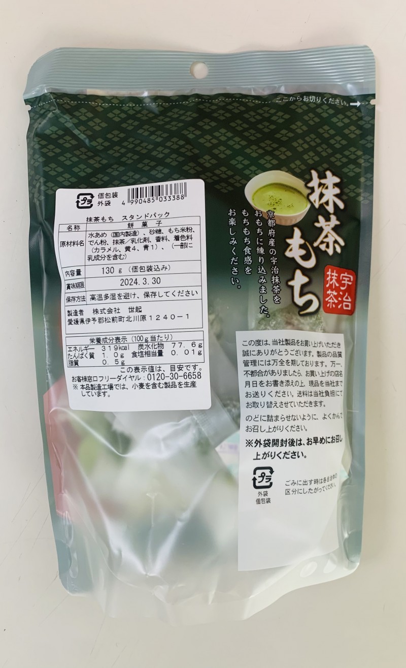Пирожное Моти с зелёным чаем (Удзи матча из Киото) Seiki, пак 130г, 1/12