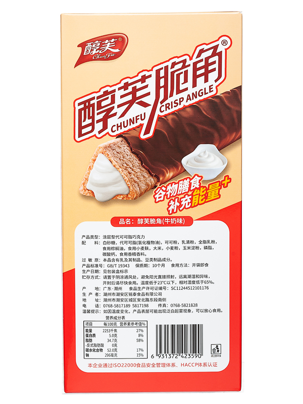 Печенье бисквитное ChunFu хрустящее Crisp Angle с молочной начинкой