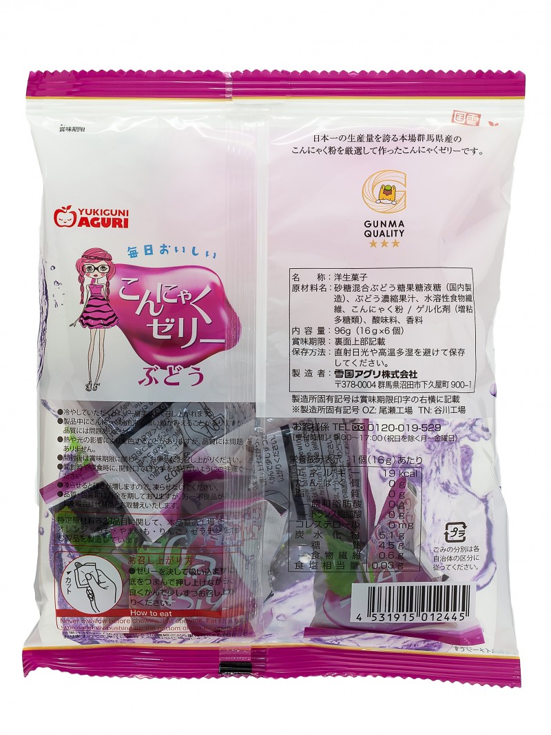 Желе Yukiguni Aguri cодержит натуральный сок винограда и имеет удобный порционный формат.