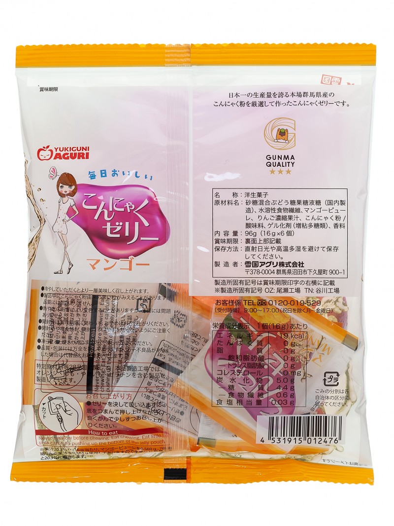 Желе Yukiguni Aguri cодержит натуральное пюрее из манго и имеет удобный порционный формат.