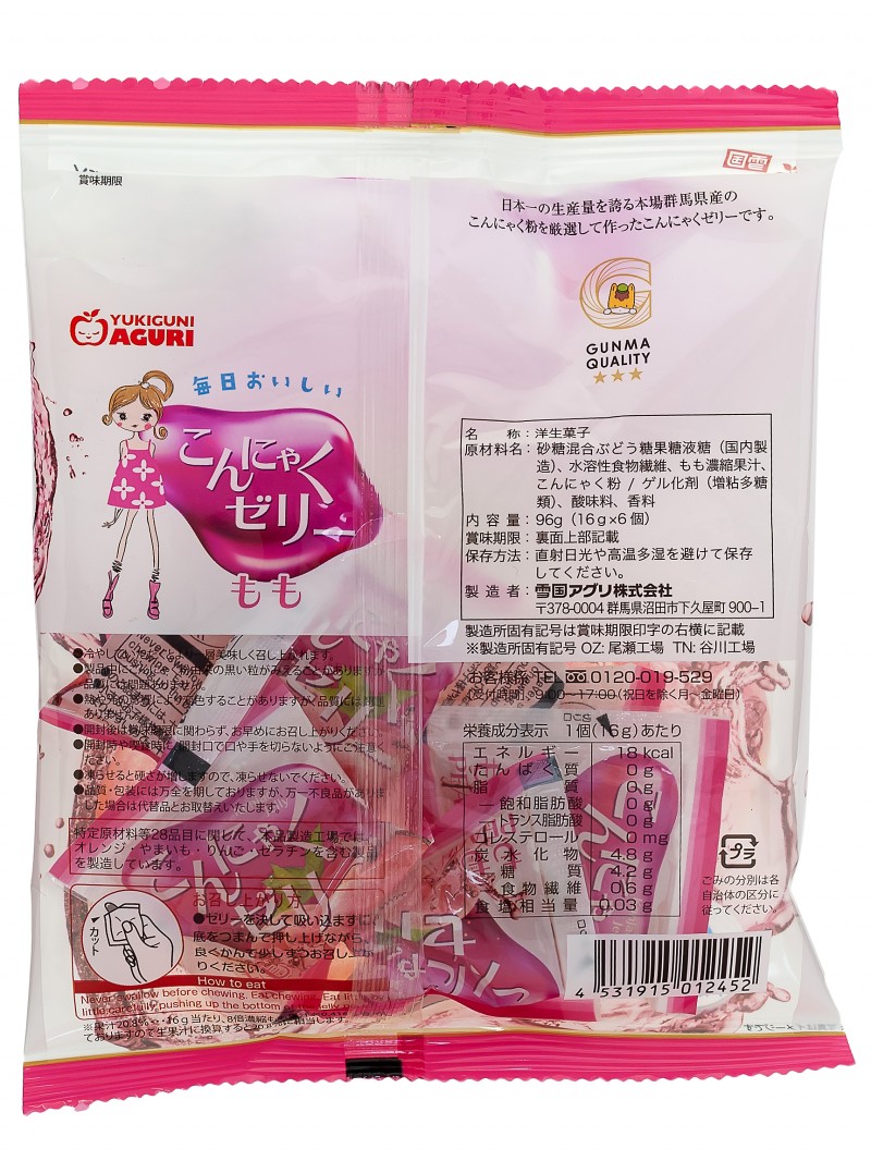 Желе Yukiguni Aguri cодержит натуральный персиковый сок и имеет удобный порционный формат.