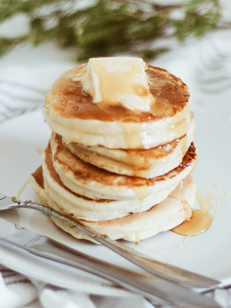 Выливать тесто следует с высоты около 30 см, чтобы оно равномерно распределилось. Выпекайте на слабом огне примерно 3 минуты. Когда на поверхности появятся мелкие пузырьки, переверните панкейк.