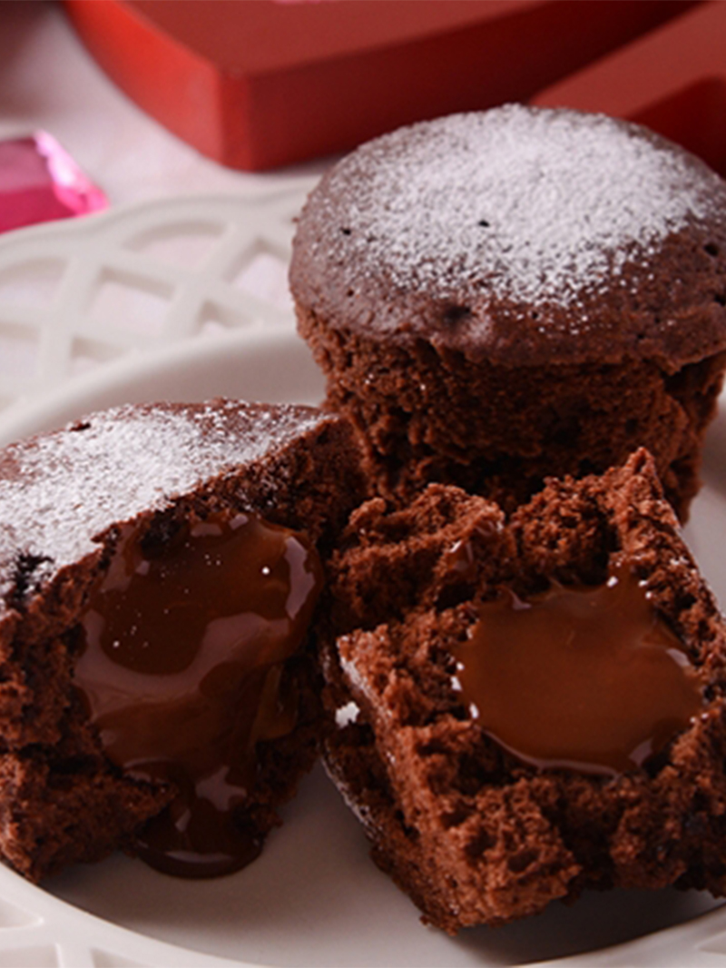 Простые кексы с шоколадной начинкой в микроволновке